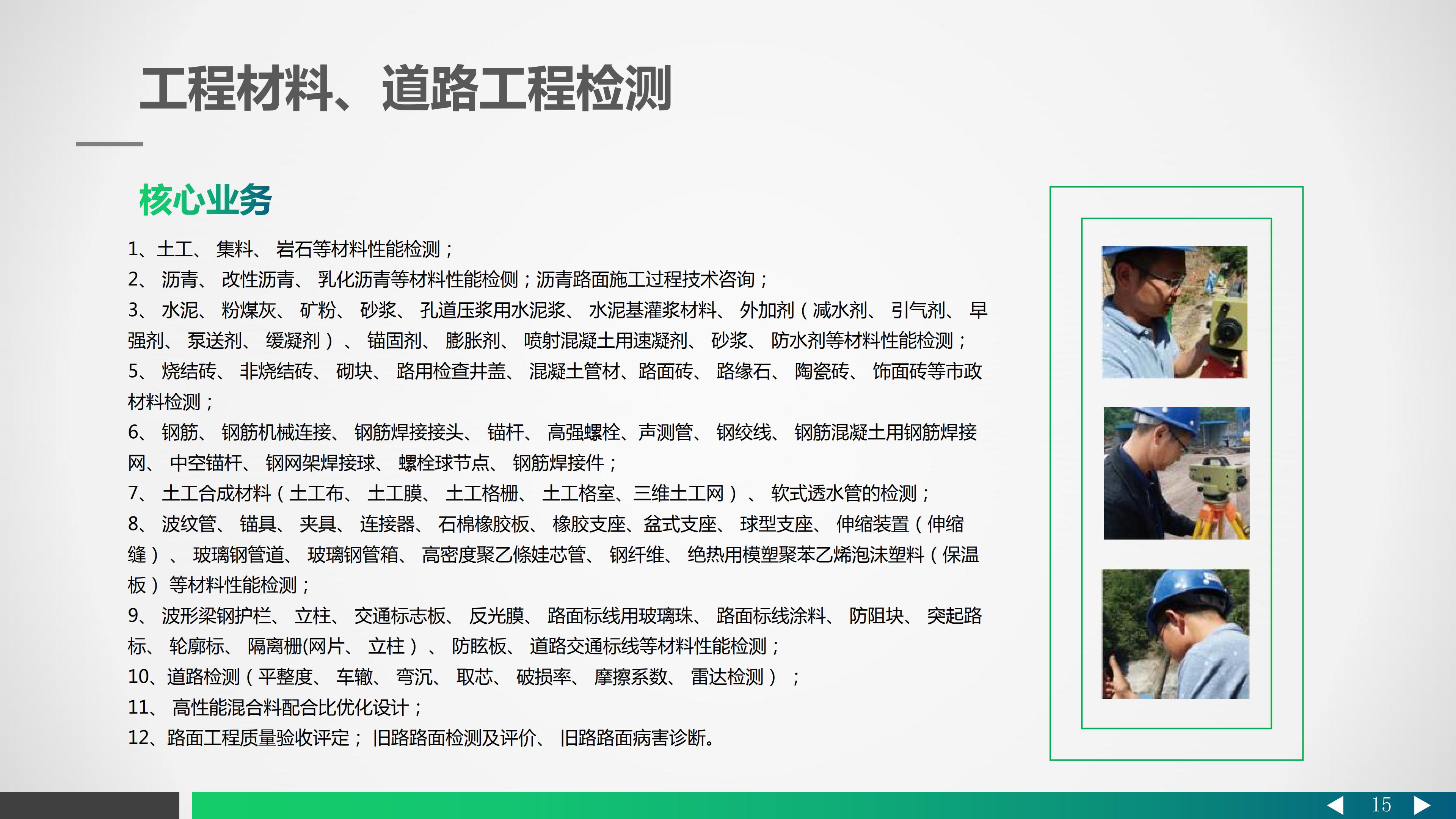 建筑材料見證取樣檢測、主體結(jié)構(gòu)工程檢測、地基基礎(chǔ)工程基礎(chǔ)、建筑節(jié)能檢測、人防工程檢測、建筑幕墻工程檢測、工程檢測、公路工程試驗(yàn)檢測。
