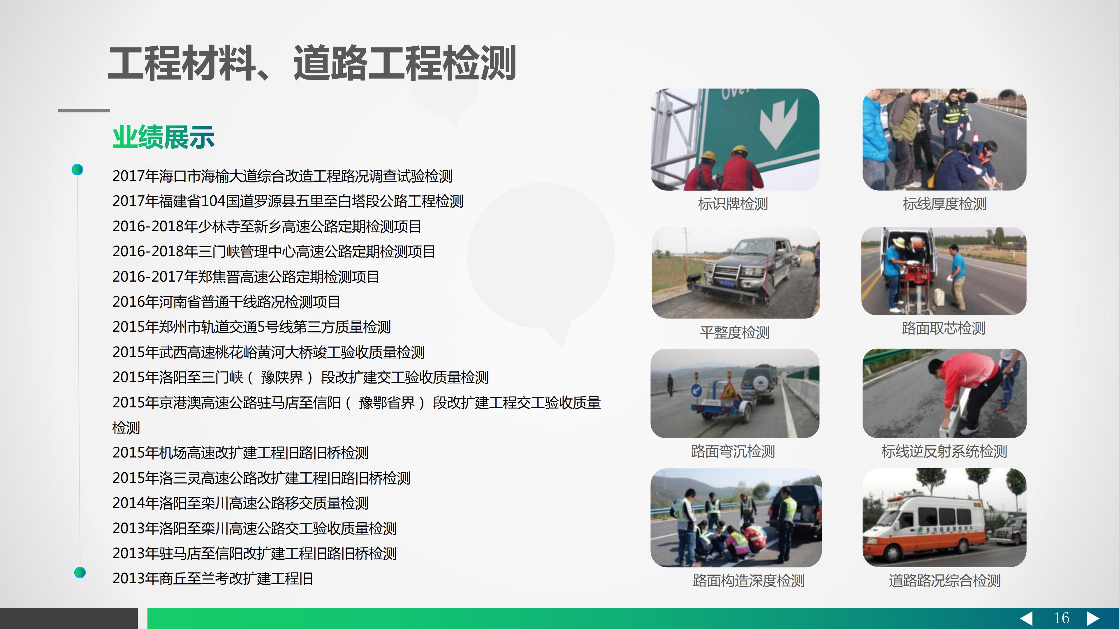 公司自成立以來,共開展各類科研項(xiàng)目40余項(xiàng),其中獲得中國公路學(xué)會科技進(jìn)步一等獎3 項(xiàng)、三等獎2項(xiàng),交通部科技進(jìn)步一等獎1項(xiàng),交通系統(tǒng)科技進(jìn)步三等獎1項(xiàng),河南省科技進(jìn)步 二等獎2項(xiàng)、三等獎10項(xiàng),河南省交通運(yùn)輸科學(xué)技術(shù)一等獎8項(xiàng)、二等獎6項(xiàng)、三等獎2項(xiàng),申 請獲得國家發(fā)明專利2項(xiàng)、實(shí)用新型專利12項(xiàng),是河南省及中部地區(qū)工程檢測和食品安全檢測 領(lǐng)域的先進(jìn)技術(shù)團(tuán)隊(duì),愿為合作伙伴提供優(yōu)質(zhì)、快捷、超質(zhì)的服務(wù)。