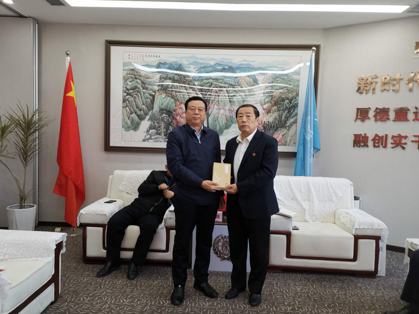 ▲董事長贈予劉會長個(gè)人書籍并合影留念