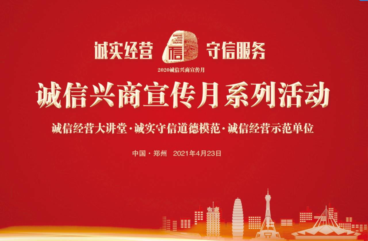 2021年4月23日下午,“2020誠信興商宣傳月誠信經(jīng)營大講堂暨誠實(shí)守信道德模范誠信經(jīng)營示范單位”頒獎(jiǎng)盛典在河南省總工會(huì)報(bào)告廳隆重舉行。