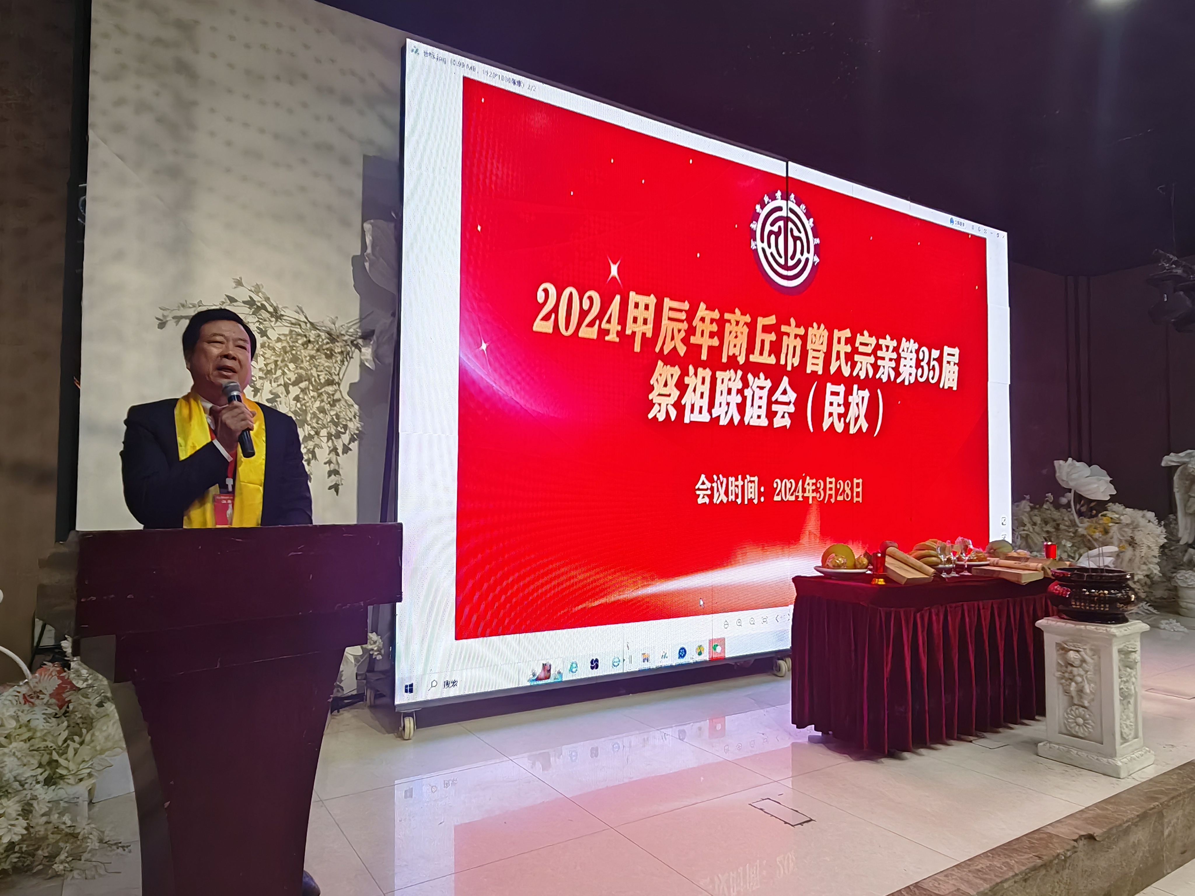 2024年3月28日,商丘市曾氏宗親第35屆祭祖聯(lián)誼會成功舉辦,曾氏宗親聯(lián)合總會常務(wù)副會長、河南省曾氏孝文化委員會會長曾占國受邀參加了此次會議,此外還有來自河南省各地市的兩百余位宗親代表出席了這次會議。