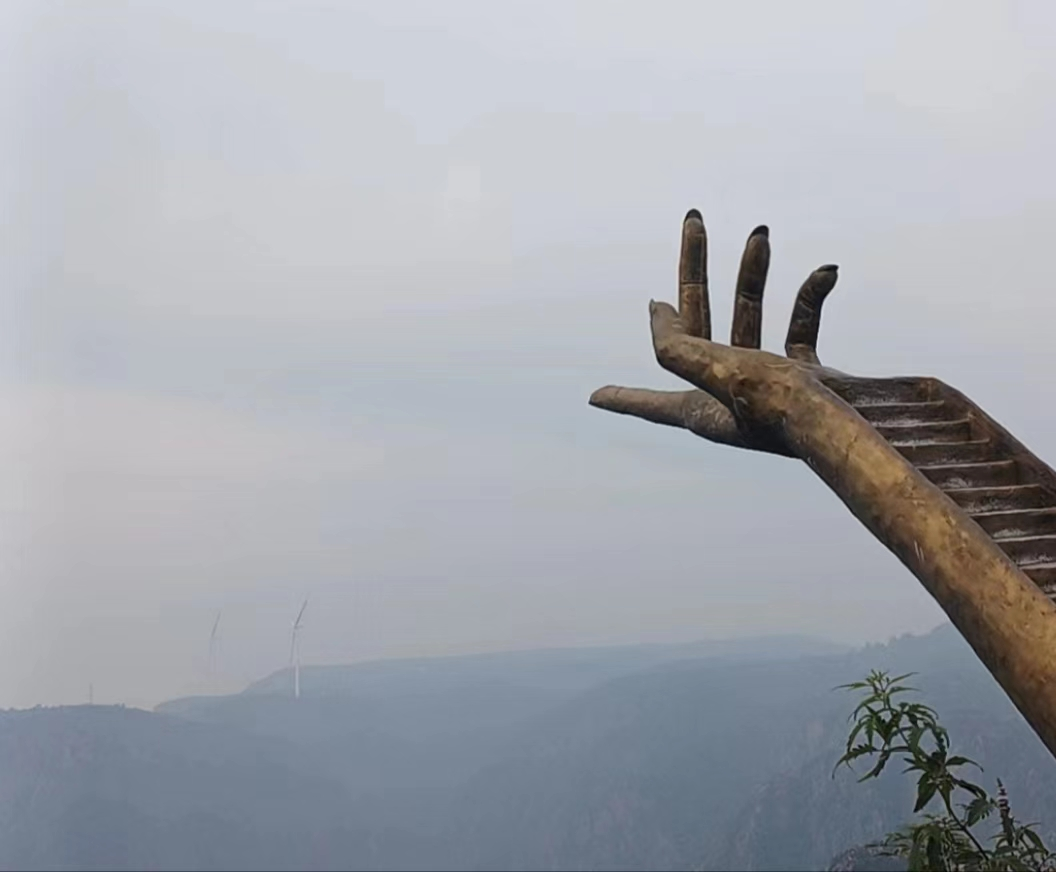 進(jìn)入景區(qū)就是一個(gè)紅色心形打卡地,幾乎每一個(gè)游玩的朋友都會(huì)上去拍一張,跟著就是懸崖樂(lè)園,里面一只托天巨掌懸空而立,站在上面猶如飛在峽谷之上,讓人膽戰(zhàn)心驚。
