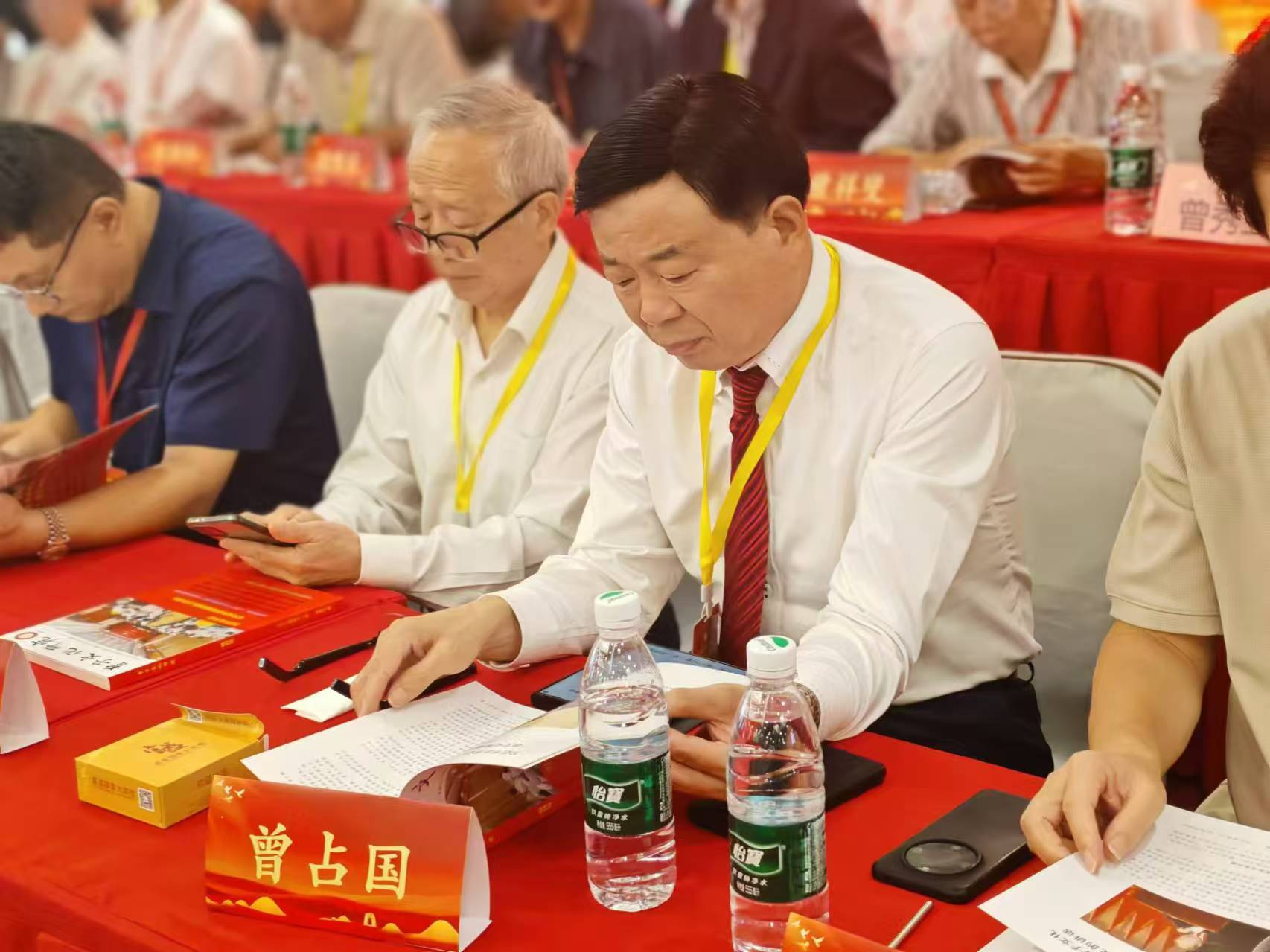 下午兩點(diǎn)三十分,新都匯廣場(chǎng)一樓已是一片熱鬧非凡的景象。這里是慶典活動(dòng)的報(bào)到現(xiàn)場(chǎng),身著各式服飾的宗親們與工作人員忙碌地穿梭其間,為即將到來(lái)的晚宴做著最后的準(zhǔn)備。曾占國(guó)先生在眾人的簇?fù)硐拢従彶饺雸?bào)到區(qū)。他身著筆挺的西裝,面帶和煦的笑容,與每一位相遇的宗親親切握手交談,場(chǎng)面溫馨而和諧。