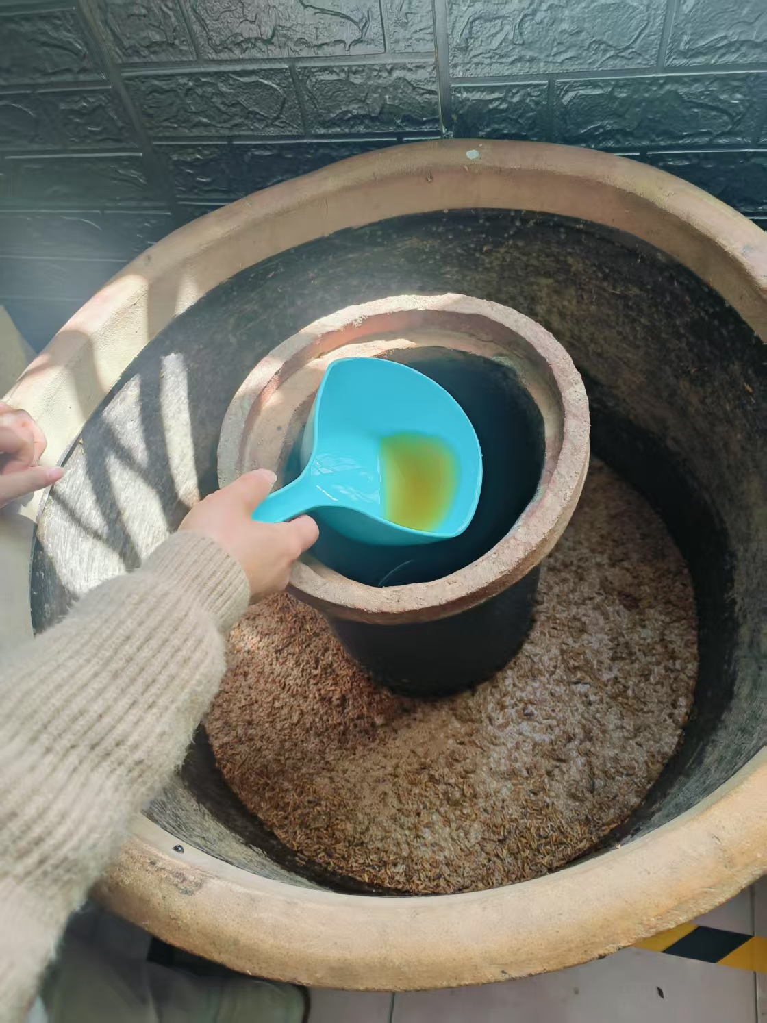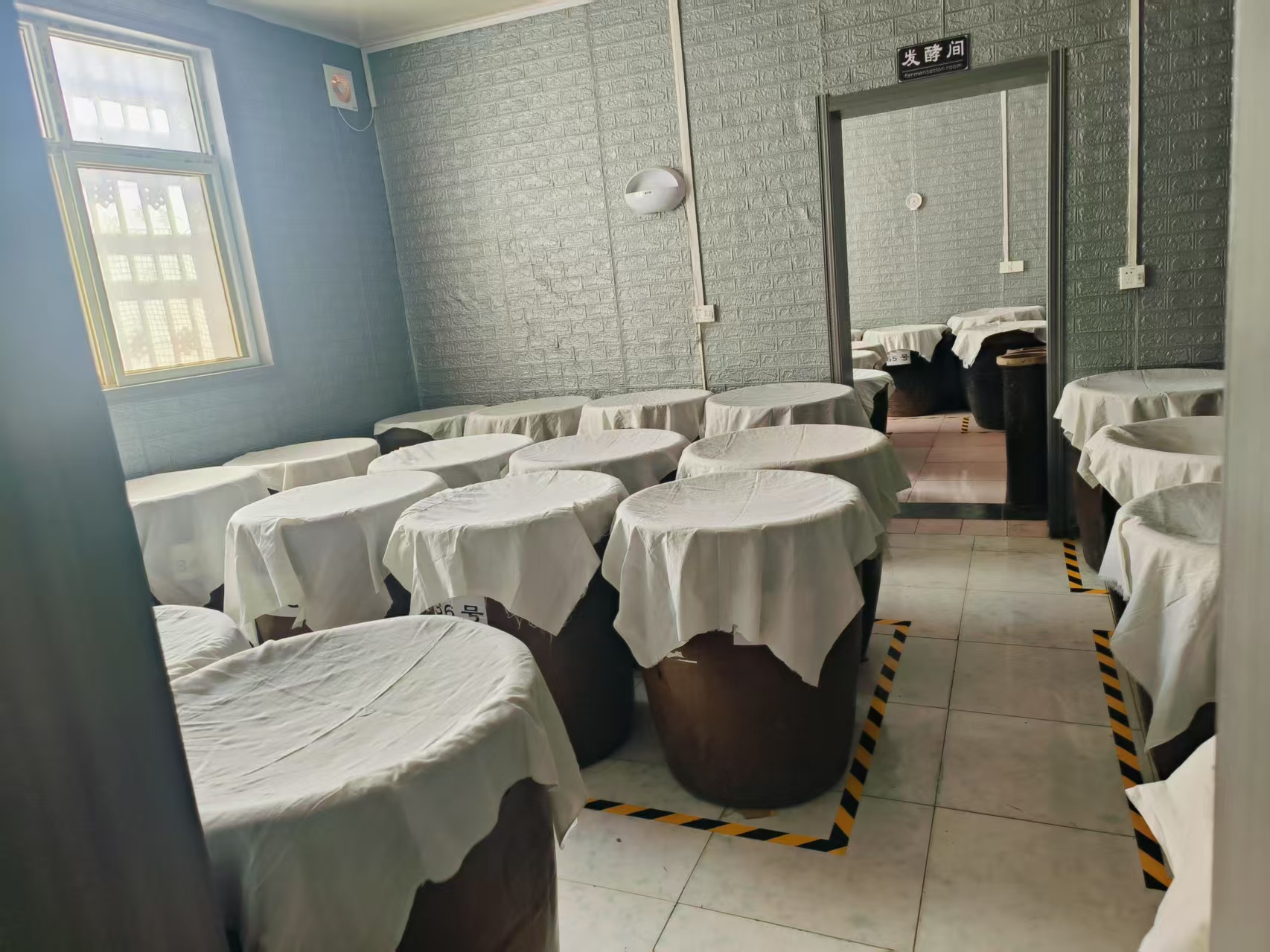 走進(jìn)陰涼的窖室,百口陶缸靜默如謎。滿室醋香。